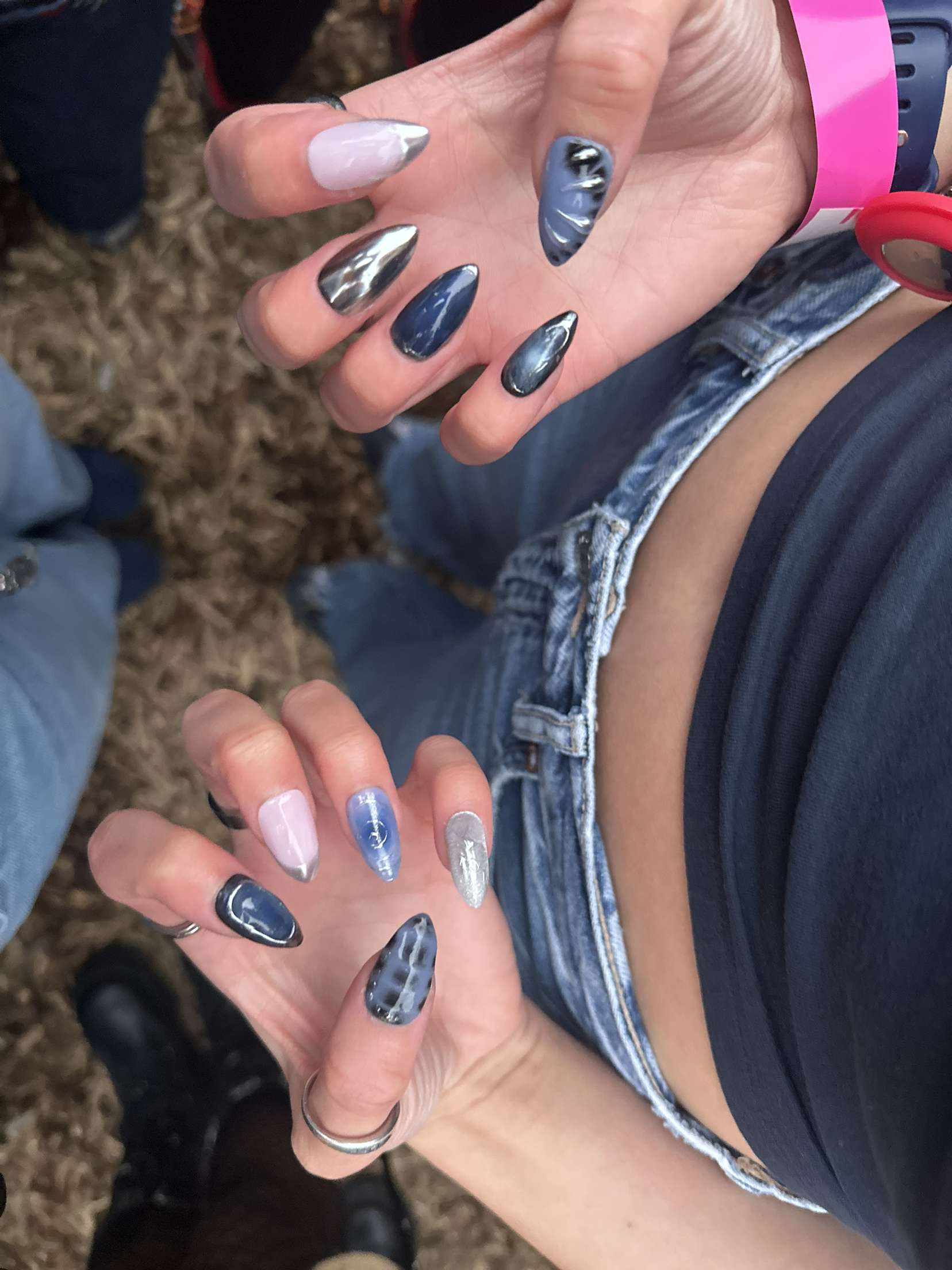 Deep sea blue met a silver retro girl. Sizes include small, medium, and large. Sizes are found on a separate page, or you could order your exact size. Please check out my page to learn how to size and other options you can check out!